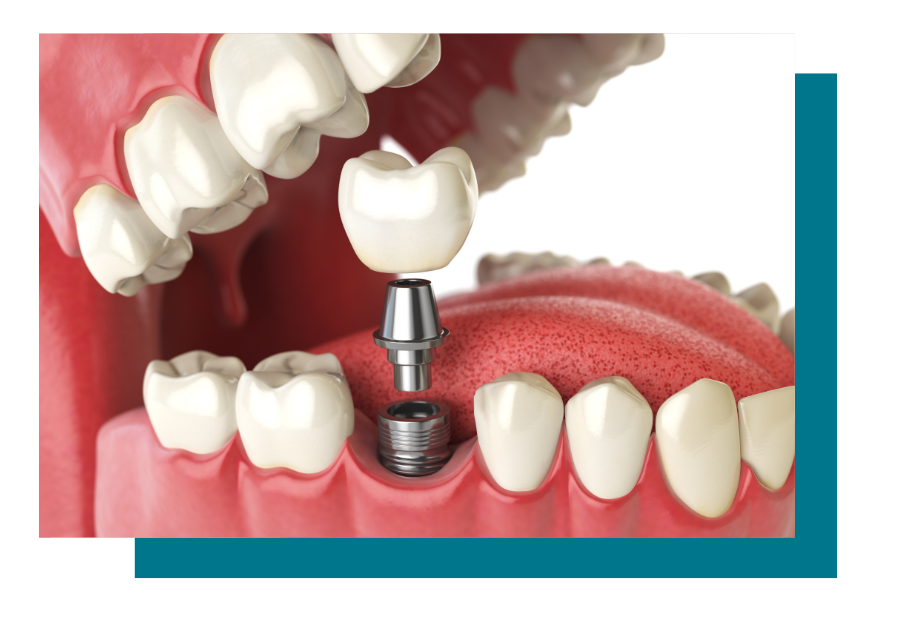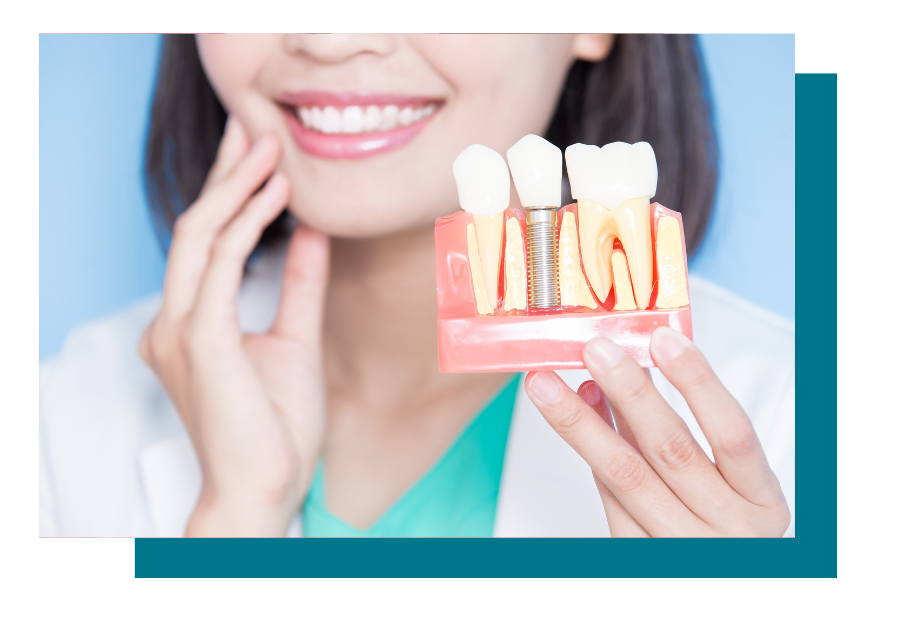 Implant to tytanowa śruba, która imituje korzeń zęba. Po zakończonym procesie gojenia na tej śrubie wykonywana jest korona protetyczna lub składający się z kilku koron most protetyczny, czyli „nowe zęby”.