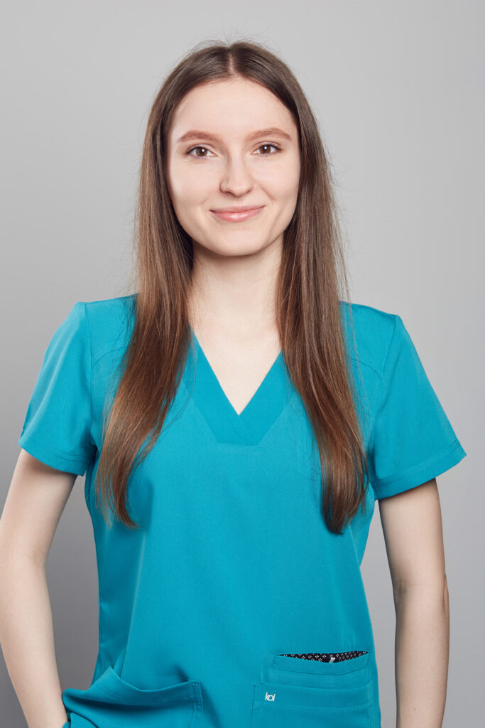 To dyplomowana asystentka stomatologiczna. Jest osobą odpowiedzialną, komunikatywną, zorganizowaną. Zawsze przyjdzie z pomocą. Dla niej nie istnieje stwierdzenie „nie da się”, „nie umiem”.